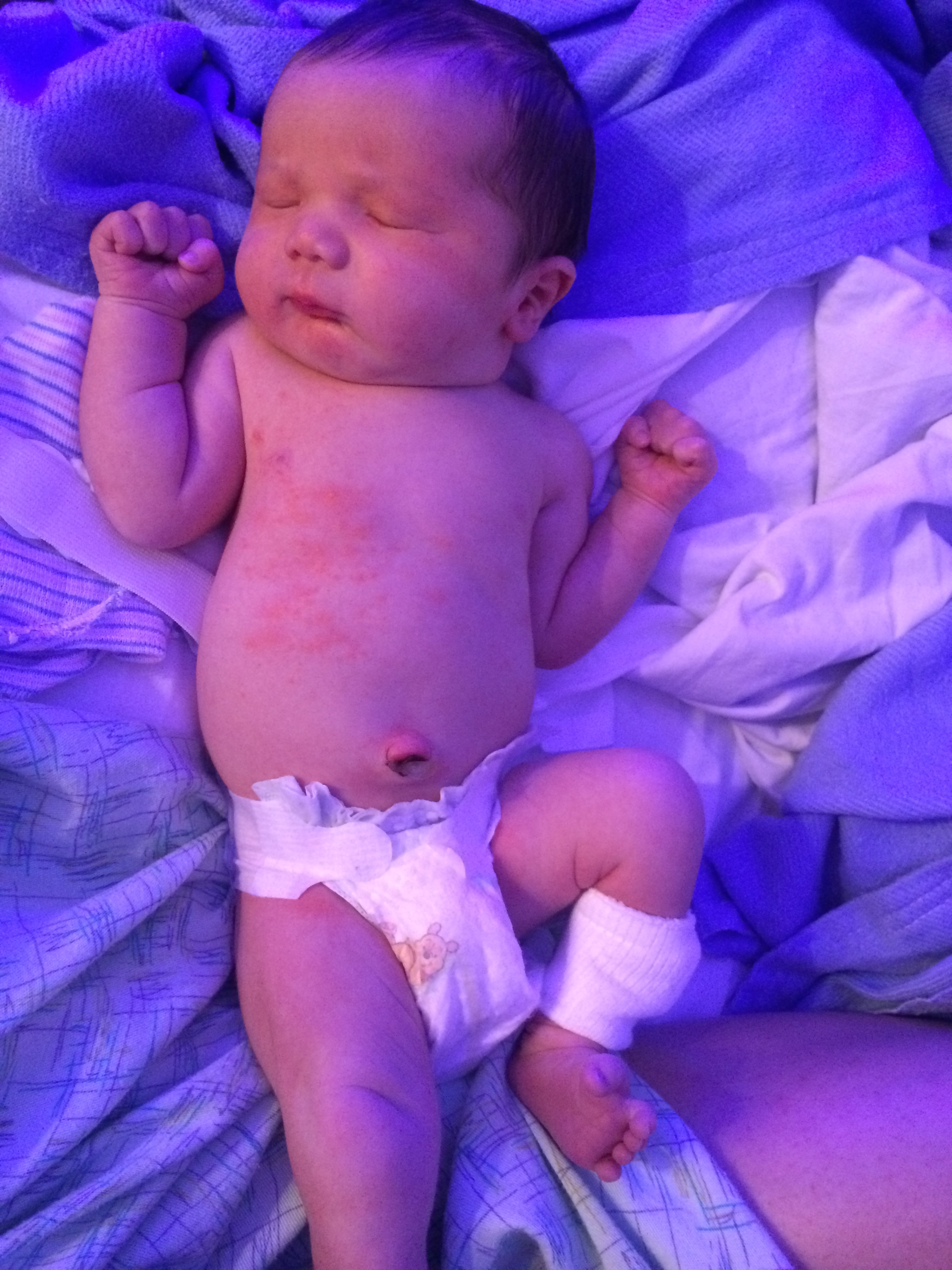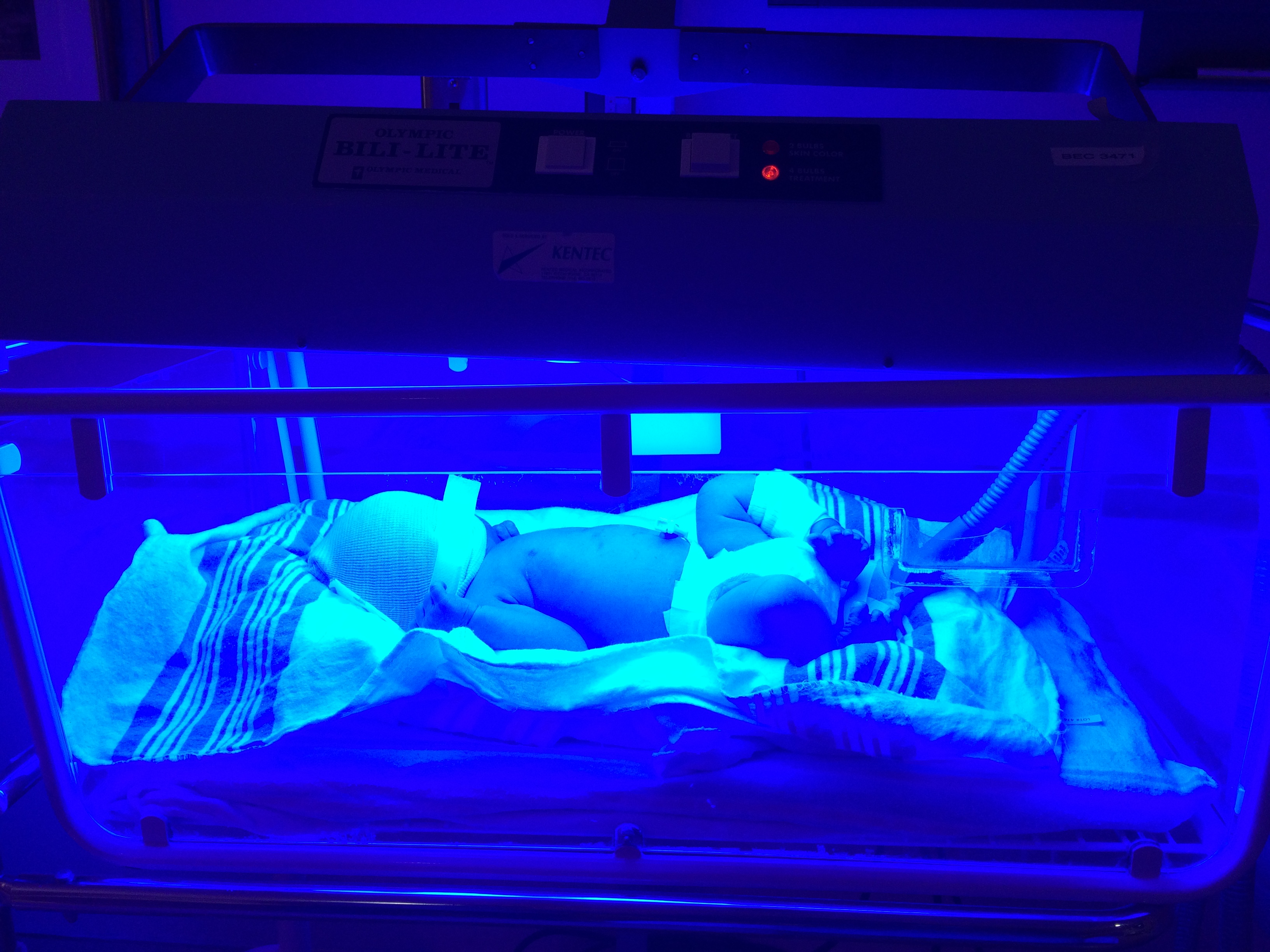 Beau had elevated bilirubin levels on the second day, so they put him under double phototherapy lights. It was really hard to see him in there, and not be able to hold him all the time. To hear him cry in there, but not be able to pick him up and comfort him. My heart ached to have him under there for almost two full days. But it kept his levels at bay and not elevated so they discharged us home the next day.